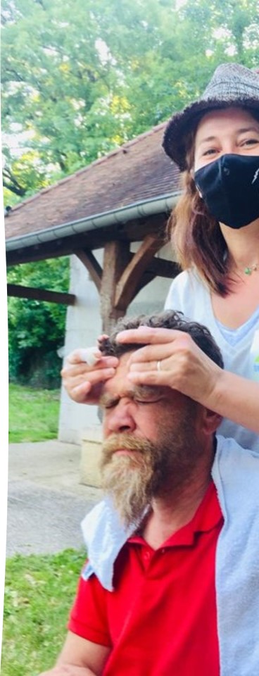– Une socio-esthéticienne également éducatrice spécialisée et une socio-coiffeuse au sein d’une équipe pluridisciplinaire (services médicaux-sociaux).